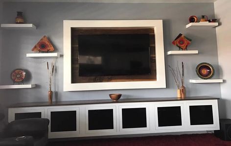 From Leslie E: I want to give a shout out to Chris with Lundquist Construction for making my vision come to life! Together, we created this amazing entertainment center. I love how modern it is yet the walnut warms it up. Chris has also painted the inside of my house and done some handyman work for me. I am looking forward to him creating my foyer piece and office shelves. I want to share his awesome work